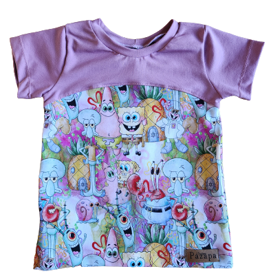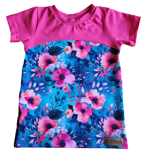 Chandail manches courtes - Fleurs fushia aqua - Fushia