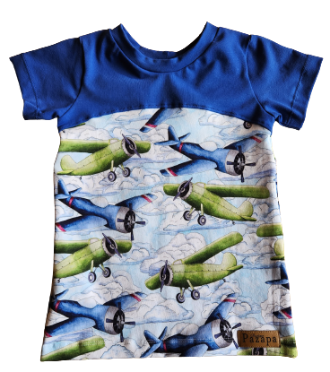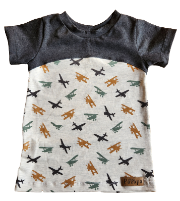 Chandail manches courtes - Avions et gris foncé 2 tons