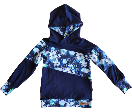 Hoodie diagonal avec poches - Fleurs bleu marine