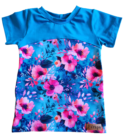 Chandail manches courtes - Fleurs fushia aqua - Aqua