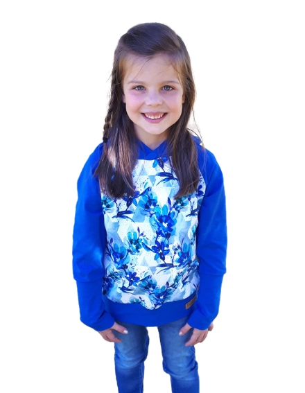 Hoodie - Fleurs bleues turquoises - Bleu royal