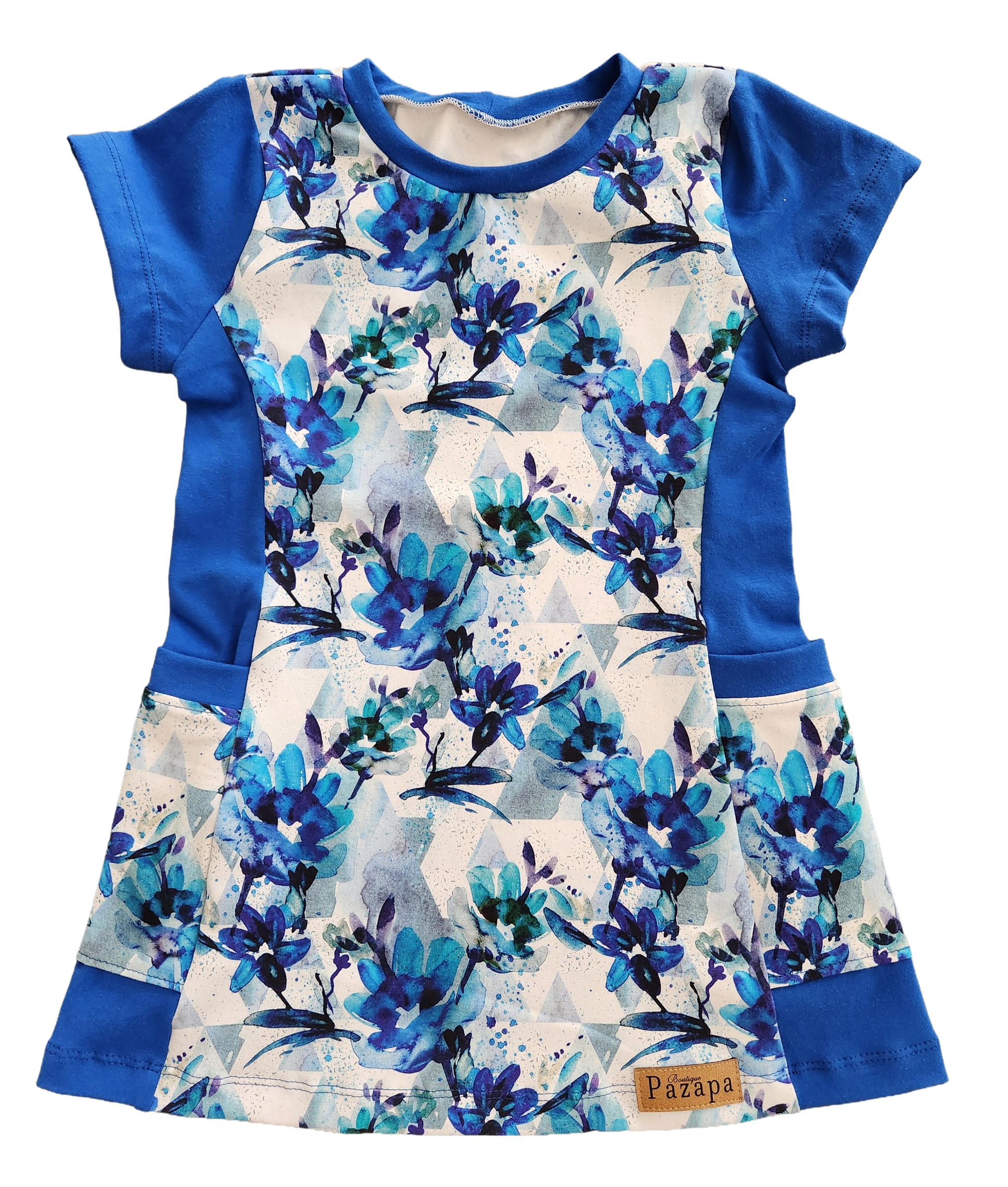 Robe tunique avec poches - Fleurs bleues turquoises